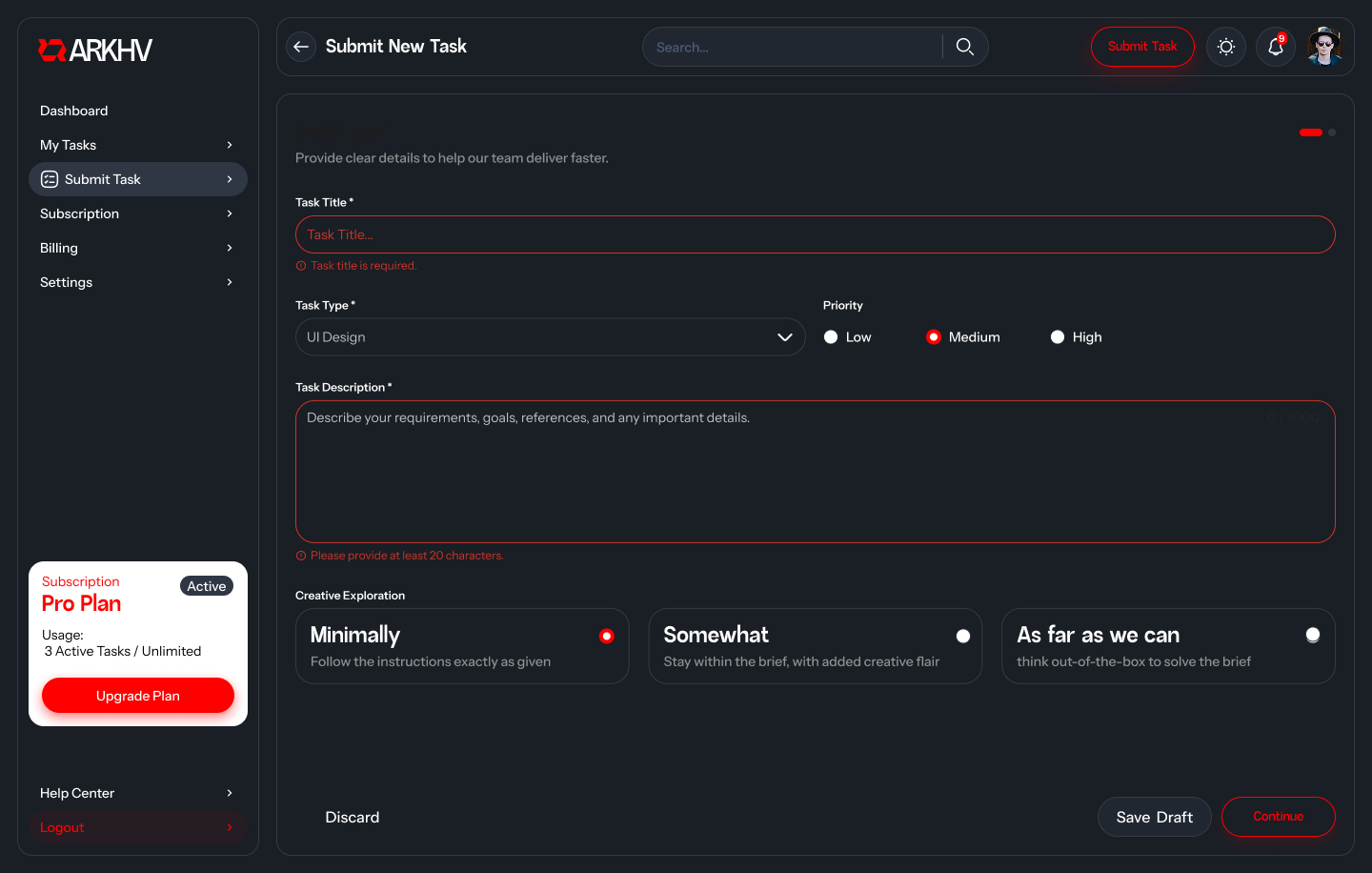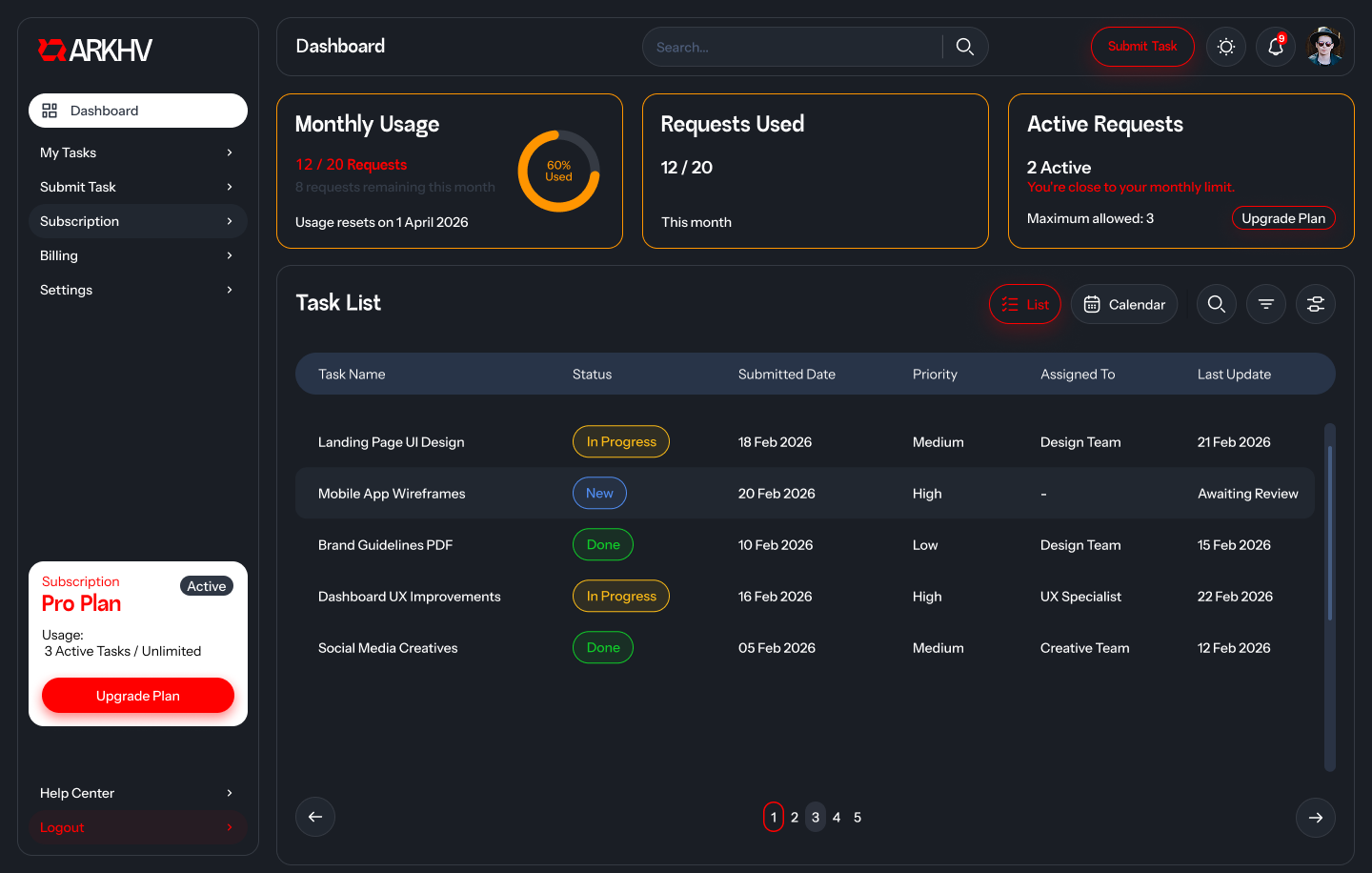 ARKHV helps teams manage design and creative requests in one organized workspace.